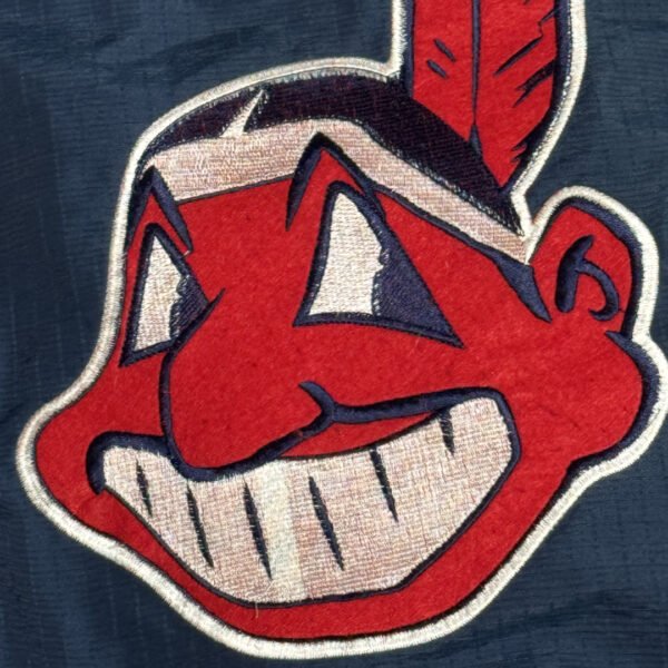 Giacca Bomber MLB Cleveland Indians blu e bianco con logo ricamato.
