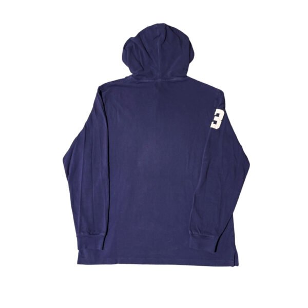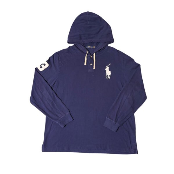 Polo a maniche lunghe con cappuccio Polo Ralph Lauren Big Pony colore blu scuro con ricamo bianco.