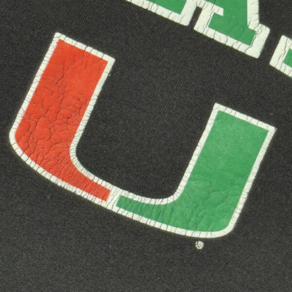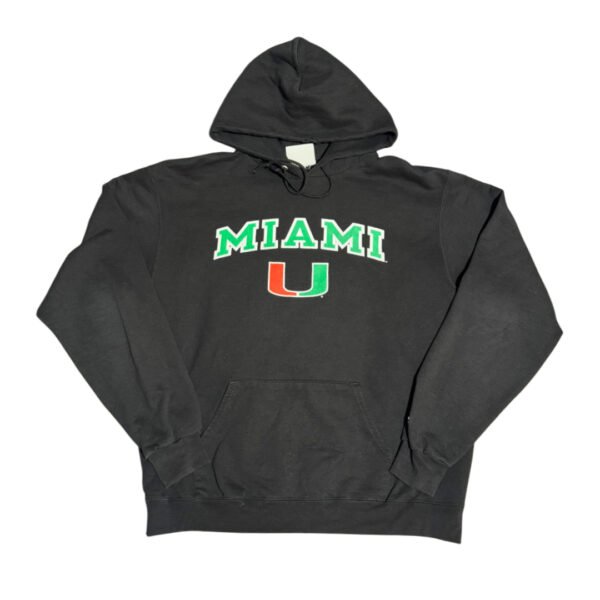 Felpa con cappuccio Champion NCAA Miami Hurricanes University Logo nero con stampa colore verde bianco arancione.