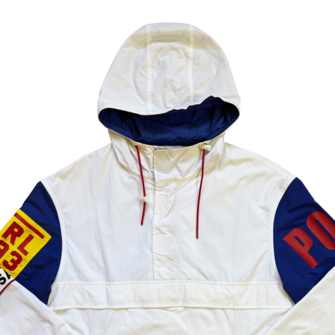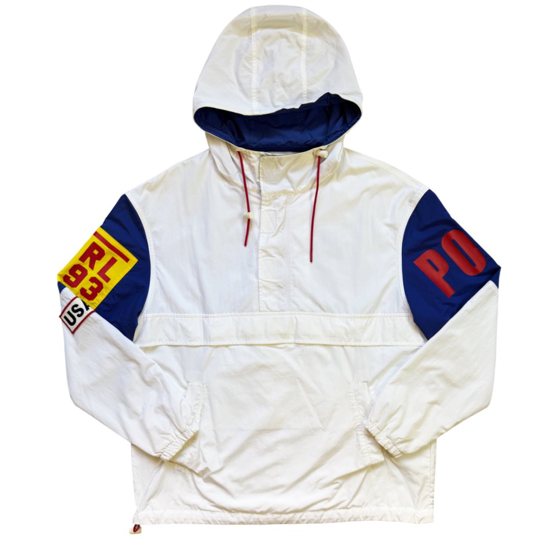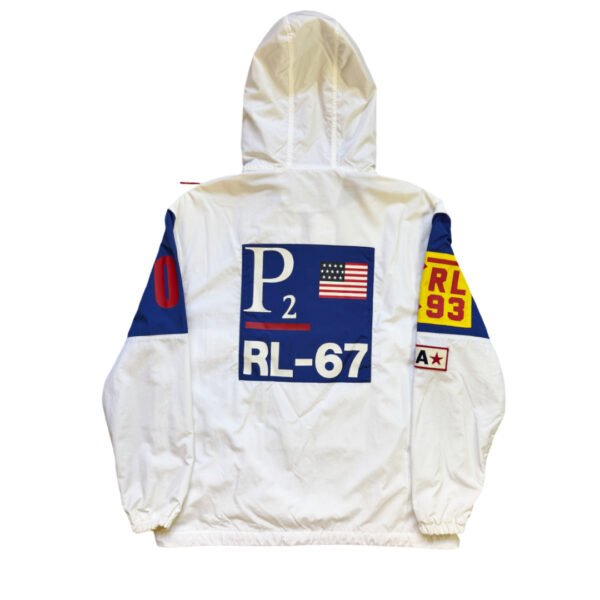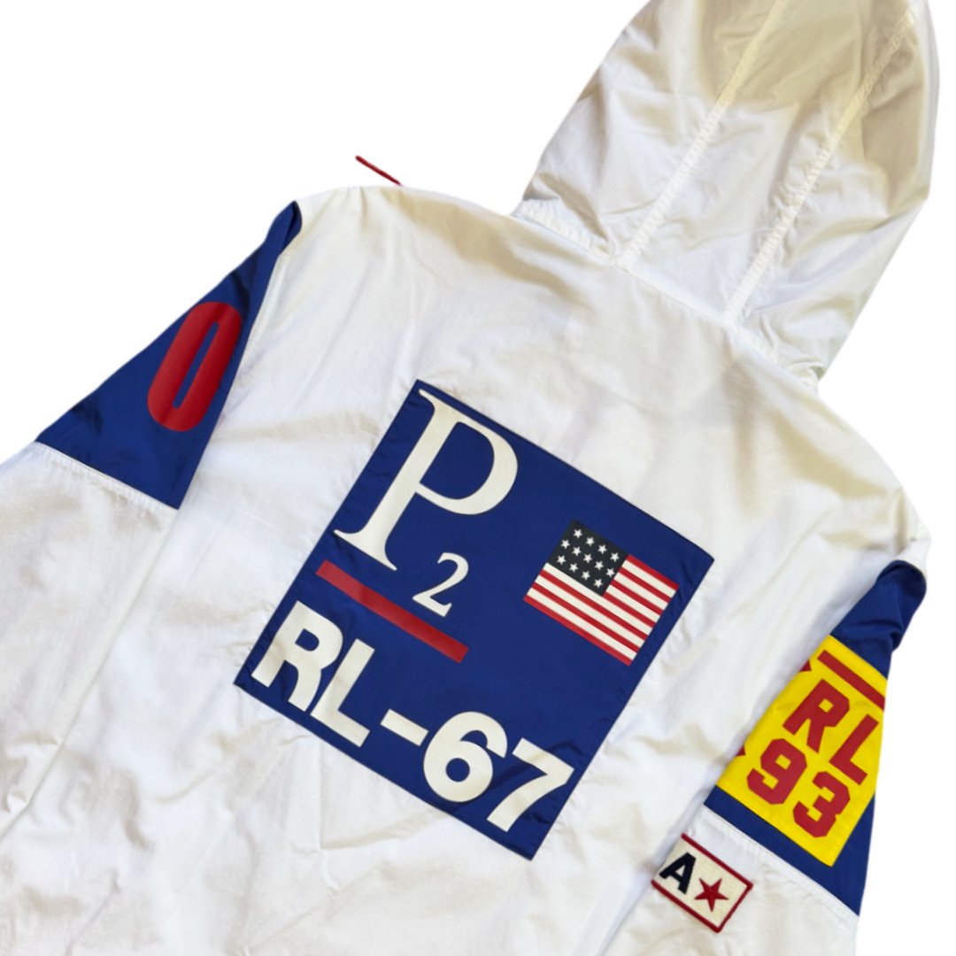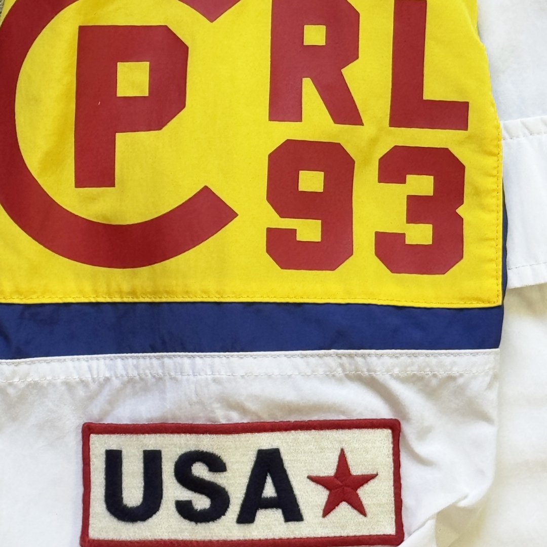 Giacca Ralph Lauren Polo P2 CP RL-93 Usa Logo stampa retro dell’originale 1993 vintage, tessuto stile giacca tecnica – anorak leggero. Ricamo sul retro logo bandiera RL-67 Logo. La giacca veste molto larga e non rappresenta il classico fit slim Polo Ralph Lauren.