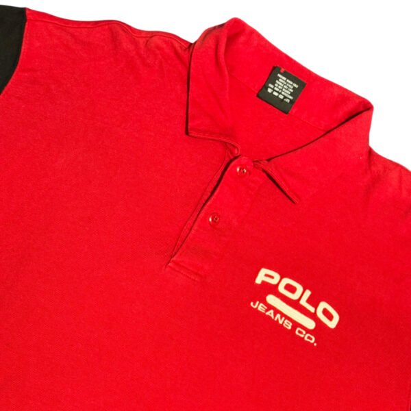 Polo a maniche lunghe Polo Ralph Lauren Jeans Co. colore rosso con ricamo logo 67 grande colore bianco. .