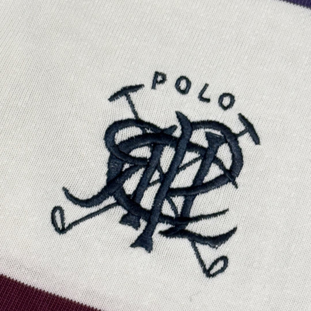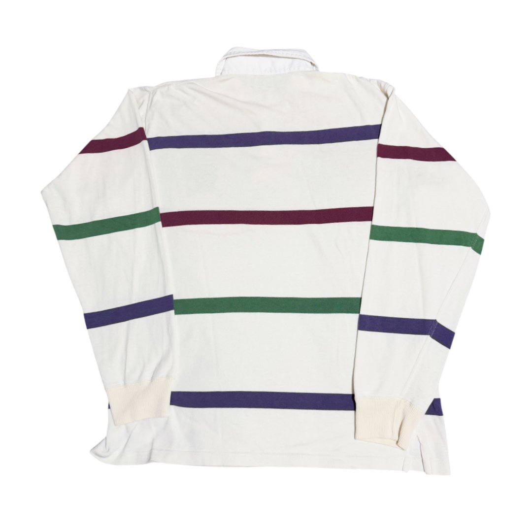 Polo a maniche lunghe Polo by Ralph Lauren colore bianco e verde a righe con ricamo Scribble Logo anni 90.