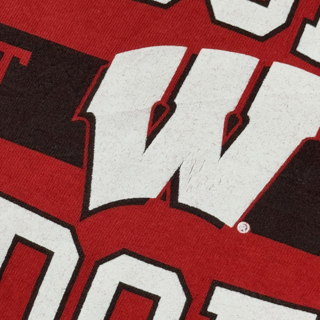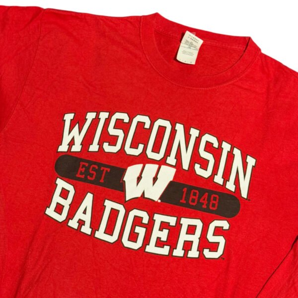 T-Shirt a maniche lunghe NCAA Wisconsin Badgers rosso con stampa logo colore nero e bianco.