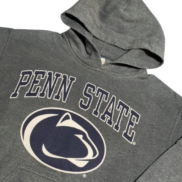 Felpa con cappuccio Gildan NCAA Pennsylvania State University colore grigio scuro con stampa logo bianco.