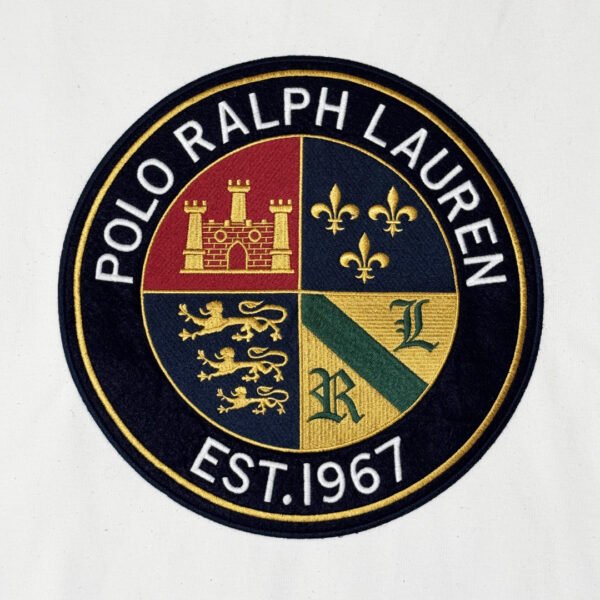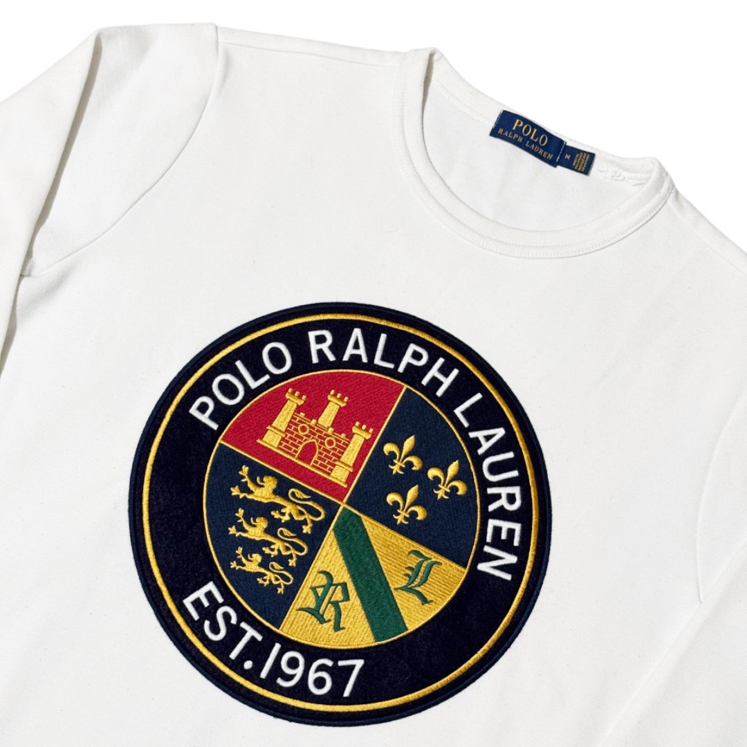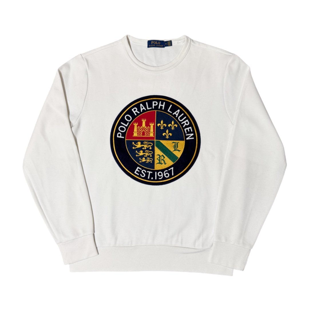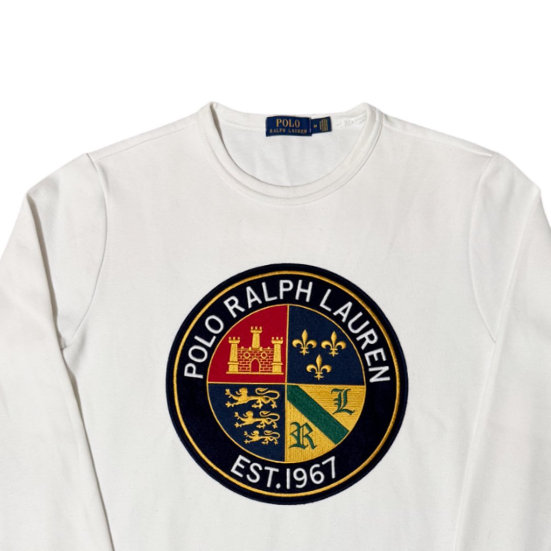 Felpa stile pullover Polo Ralph Lauren Cookie Logo, con ricamo per il logo; colore bianco, con dettagli rifiniture e multicolorazione per il ricamo frontale. Materiale in cotone, ideato per la mezza stagione e vestibilità regolare.