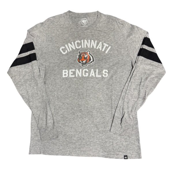 Maglia a maniche lunghe 47 Brand NFL Cincinnati Bengals colore grigio con stampa arancione e bianco.